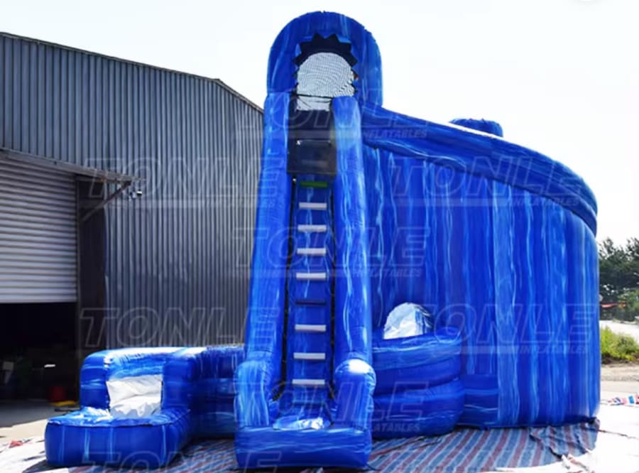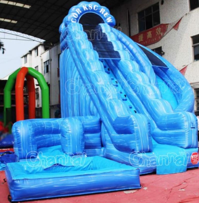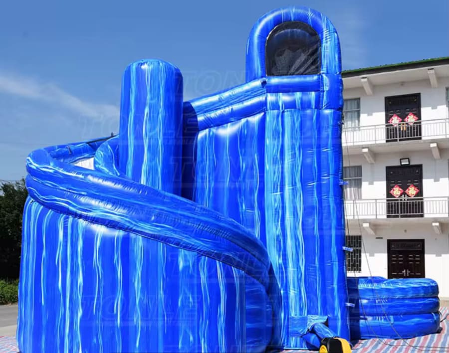 Our 22' Single Lane Corkscrew Water Slide is ideal for a number of outdoor events, including birthday parties, family reunions, Fourth of July celebrations, carnivals, barbecue, fundraisers and more. This inflatable slide will suit your outdoor entertainment needs.