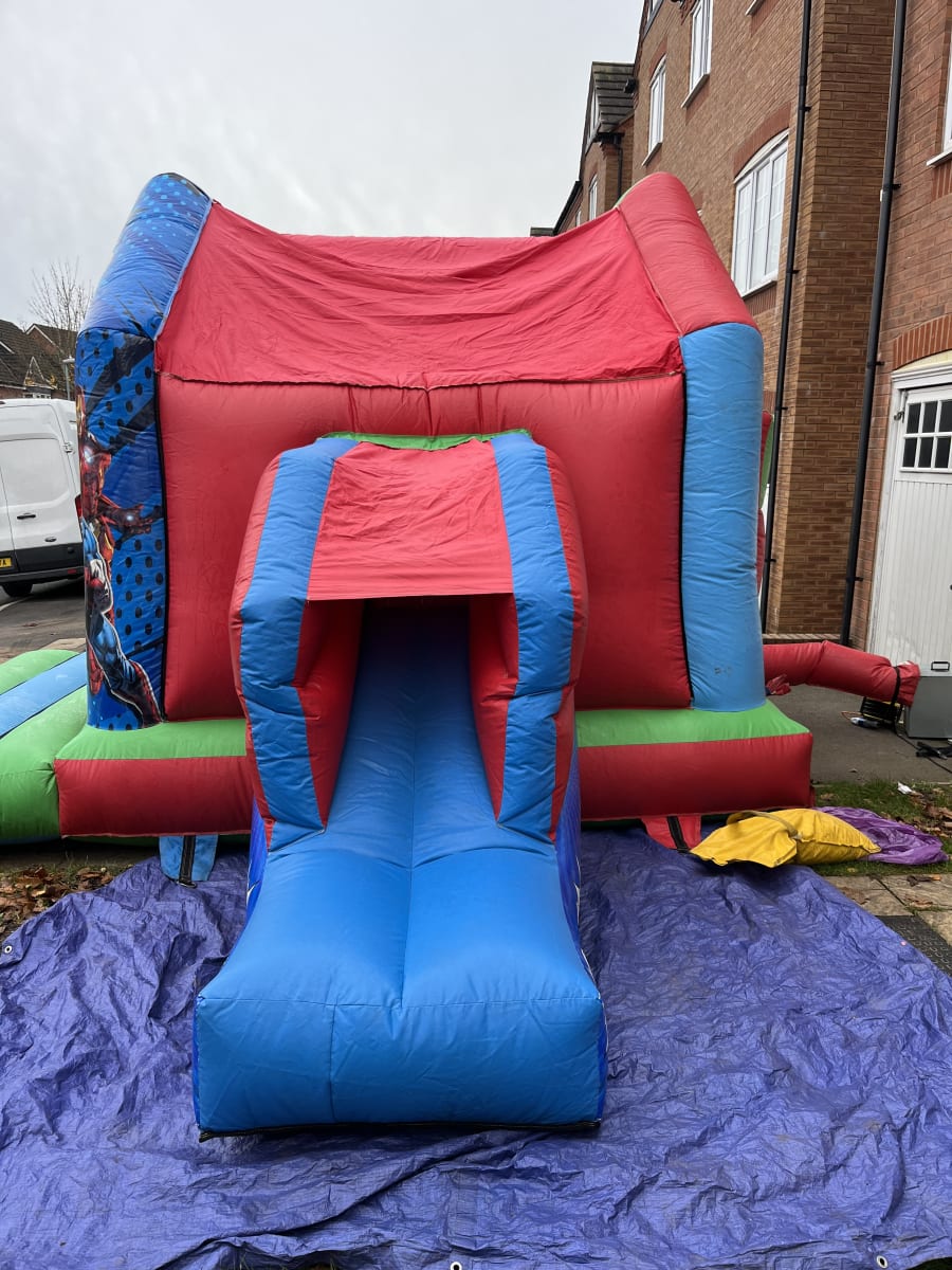 The Very popular Superhero theme bouncy castle & slide combi! Impress your child with this stunning bouncy castle that will look amazing at any party. Getting bored of just a standard bouncy castle then why not try this castle that comes with a slide for extra fun when on the castle