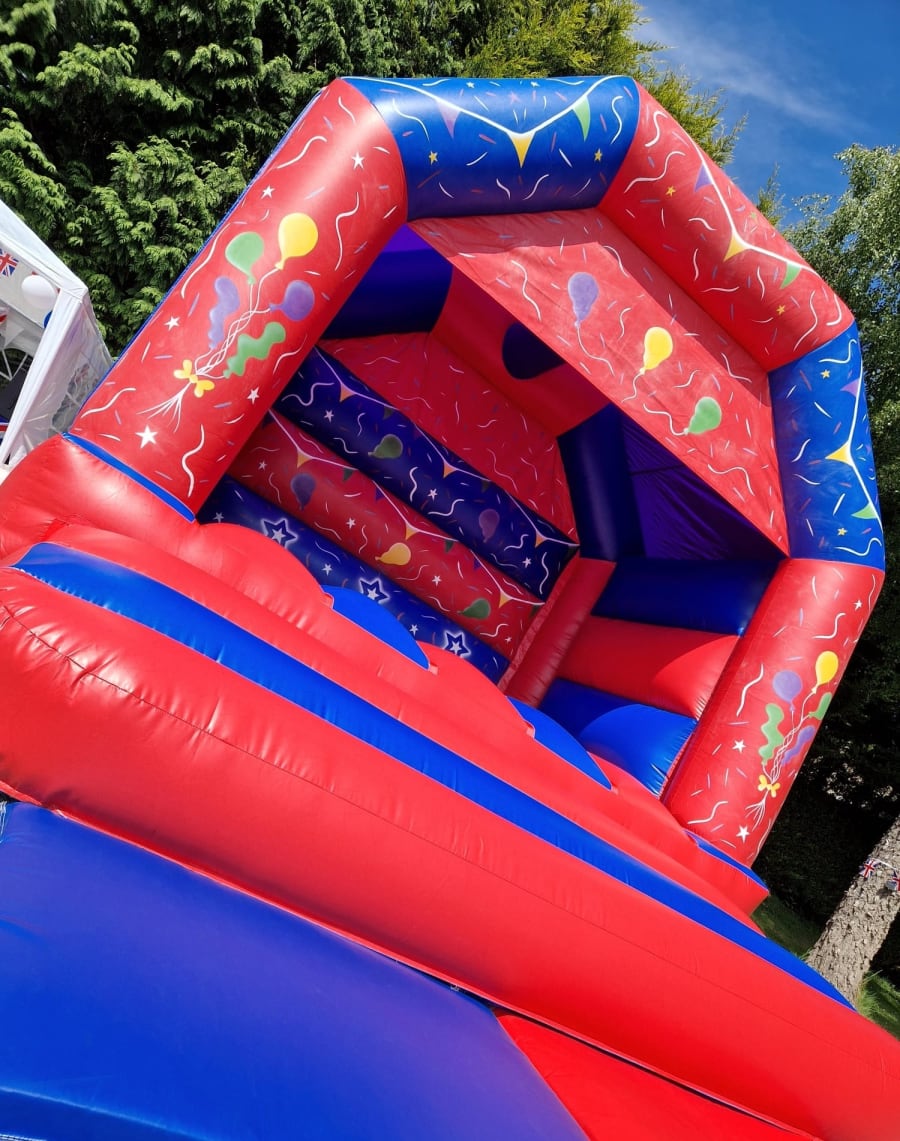Please measure area for hire before booking. You will also need to allow an extra 4ft width for both sides & an extra 10ft in length for the front step & the fan pipe at the rear of the castle. (If the inflatable is for indoor use you will also need to measure height)