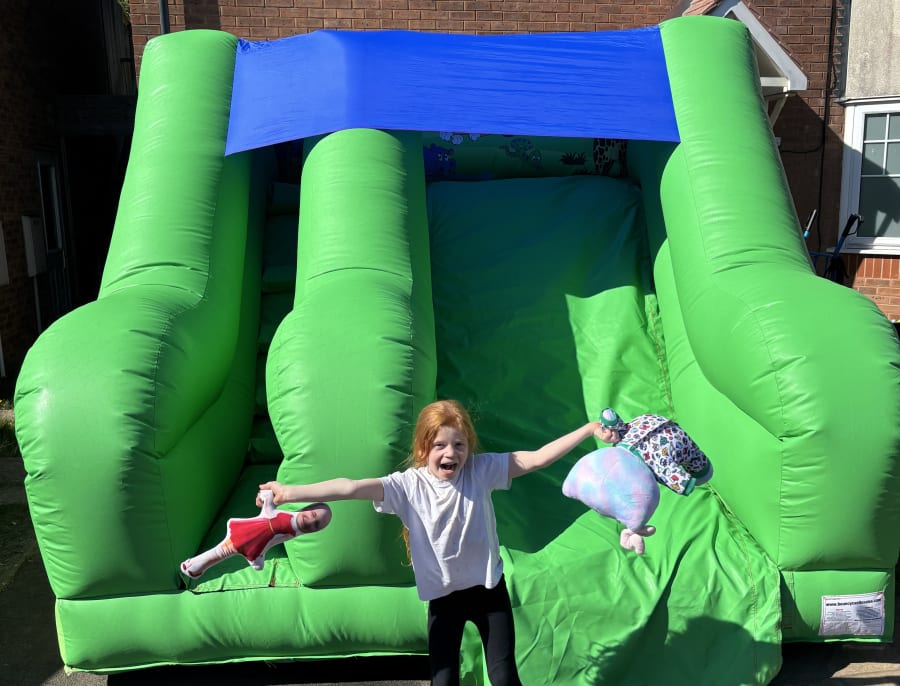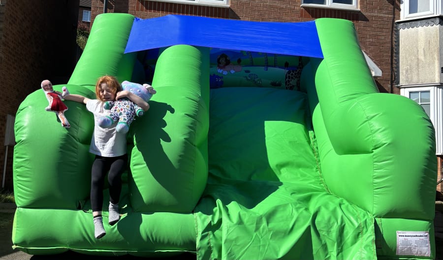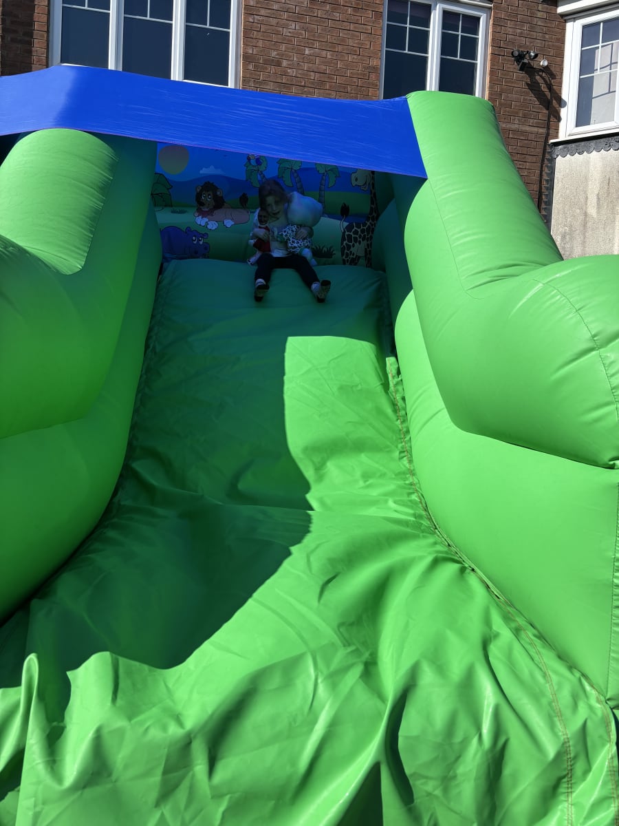 Get ready for hours of non-stop fun and laughter as children climb up the 5ft platform and slide down the thrilling jungle slide. This inflatable slide is designed to provide a safe but fun experience for kids of all ages! Whether you're hosting a birthday party, a school event, or a community gathering, the 5ft jungle slide is a fantastic choice. Its jungle theme and stand out colours makes it a centrepiece wherever it goes.