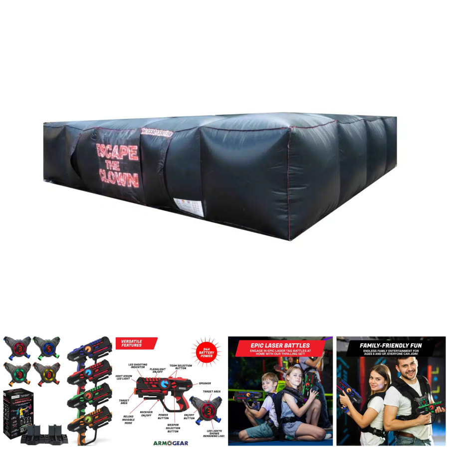 26ft x 21ft Inflatable heavy duty Laser tag Quest ideal for indoors or outdoor parties for Nerf target wars & Laser tag guns. Enjoy our Inflatable indoor or outdoor maze for hire. which is available in Birmingham and surrounding areas. Can include internal speaker systems, please ask for further information.
