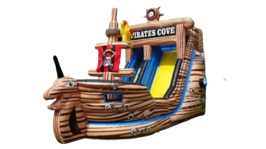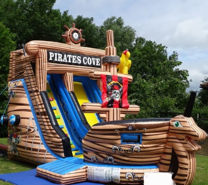 The Very popular pirate ship mega slide ! Impress your child with this stunning bouncy castle that will look amazing at any party. Getting bored of just a standard bouncy castle then why not try this castle that comes with a slide for extra fun when on the castle