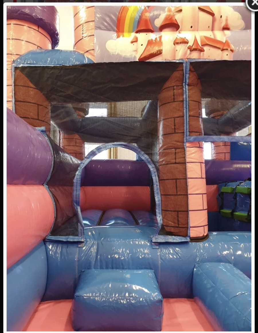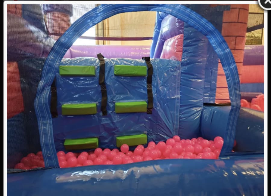 Finished in pretty pink and purple tones this is a huge and hugely impressive party piece and a real money maker for any charity event or school fair. But it is big, so please make sure you check you have the space required before you book, to avoid disappointment on the day. This item is for indoor use only, and you’ll need at least 25ft by 28ft of floor space, plus a ceiling clearance of at least 14ft. If in doubt, please give us a call to confirm suitability.