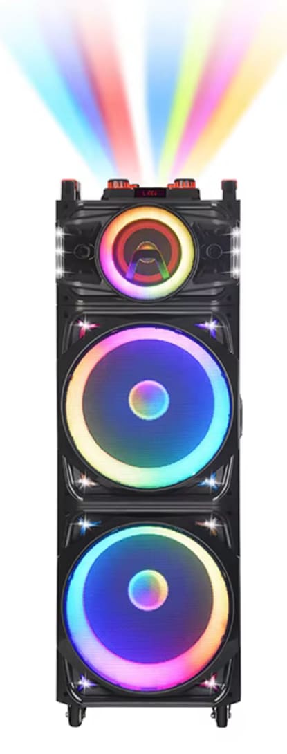 4ft Bluetooth karaoke speaker with two microphones ideal for small events and garden parties