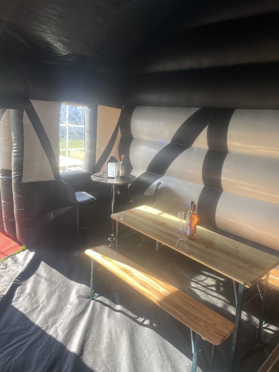 Hire the Inflatable Pub for all different events and parties from birthdays, anniversaries to just summer parties. What better way to celebrate new years eve than inside your very own pub. We have all the extras to hire such as: wooden bar, stools, round tables, benches, disco lights, smoke machine and speaker.