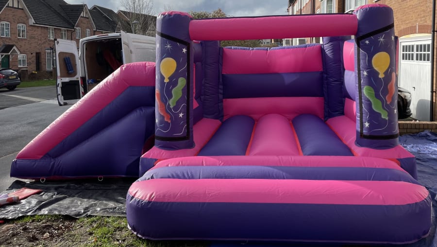 18ft x 13ft Purple And Pink Balloon Bouncy Castle Slide